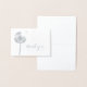 Une fleur de dandelion en feuille d'argent avec des graines flottantes accentue cette carte de remerciements, ce qui en fait le parfait simple et élégant merci. L'intérieur de cette carte a beaucoup de place pour votre propre message personnel. Une enveloppe grise de coordination accentue la feuille d'argent de cette carte.