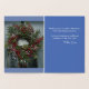 Magnifique de notre maison à votre carte de voeux de Noël avec devant de la carte ayant une image décorative en papier argenté élégant. À l'intérieur de la carte a l'image couleur pleine de jolies fleurs de Noël avec des baies rouges et des glaces sur une porte d'entrée en verre. Un message spécial est écrit à l'intérieur du côté droit de la carte avec un arrière - plan bleu. Laissez le libellé tel quel, ou supprimez et insérez votre propre message spécial. Le dos de la carte a la Paix écrite en feuille d'argent. Photographie originale, Card Verse Copyright © TamiraZDesigns.