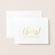 Cette belle carte de voeux en feuille d'or véritable dispose de lettres élégantes "Cheers" avec texte personnalisé. Ce simple carte pour notes sera une façon parfaite de féliciter la journée spéciale des gens. Des modèles de cartes à papier plus stylisées sont disponibles dans ma boutique BaraBomDesign.