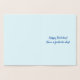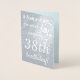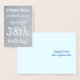 Cette carte de voeux d'anniversaire en feuille d'argent basique et customisée comporte un message comme "A-Name-Here, nous vous souhaitons un merveilleux 38ème anniversaire!" sur le devant, où le nom et le numéro d'anniversaire peuvent être customisés. L'intérieur comporte un message d'anniversaire personnalisé. Une carte d’anniversaire comme celle-ci pourrait être remise pour célébrer l’anniversaire de quelqu’un.