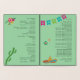 Modèle du programme de mariage catholique de Fiesta mexicaine. Ce Modèle du Programme de Mariage Catholique vous permet de customiser quatre "pages" - les deux côtés du papier avec beaucoup de texte, pour une cérémonie catholique. Ajoutez une belle écriture pour une cérémonie chrétienne, et un message personnel. Design géométrique avec des couleurs corail et ivoire.