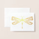 Une élégante libellule esquissée à la main, rendue dans une feuille brillante, orne une carte très spéciale pour vous permettre de composer votre message de coeur.