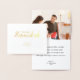 Heureux Hanoukka, photo de famille, personnalisée avec votre nom et une bénédiction douce avec de la feuille d'or, carte de vacances Hannukah. Design moderne propre. Carte de voeux juive.