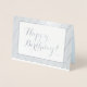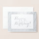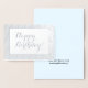 Cette conception sophistiquée et luxueuse de carte de voeux d'anniversaire en feuille d'argent comporte le message "Joyeux anniversaire" sur le devant, ainsi qu'un message personnalisable à l'intérieur. On pourrait le donner à quelqu'un qui célèbre un anniversaire.