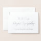Ce feuillet d'argent sympathique et basique design de carte de voeux sympathique comprend le message "Avec notre sympathie profonde" sur le devant, ainsi qu'un message personnalisable à l'intérieur. Il pourrait peut-être être utilisé pour présenter ses condoléances aux proches de quelqu'un qui est récemment décédé.