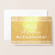 Cette carte d'anniversaire vintage et traditionnelle en feuille d'or présente le message "Joyeux anniversaire" sur le devant, et un nom qui peut être personnalisé. Il y a un message personnalisé à l'intérieur. On pourrait le donner à quelqu'un qui célèbre un anniversaire.