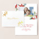 Cette carte de vacances de Noël présente un design floral moderne et une véritable feuille d'or à l'avant. Personnalisez l'intérieur avec votre propre photo et texte.