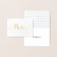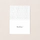 Un carte de remerciements élégant et simple avec la caligraphie MERCI avec motif pois. Choisissez entre la feuille d'or réelle ou la feuille d'argent. Parfait pour des événements personnels et spéciaux comme les mariages et les diplômes.