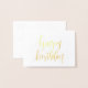 Cette belle carte d'anniversaire en lettres d'or contient les mots "heureux anniversaire" en feuille d'or sur le devant. Le blanc à l'intérieur des feuilles beaucoup d'espace pour vous d'écrire votre propre message!