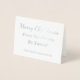 Cette carte de voeux de Noël en feuille d'argent customisée comporte le message "Joyeux Noël de notre famille à vous !" sur le devant, ainsi qu'un message customisé à l'intérieur. Il pourrait être envoyé à des amis et à la famille pendant la période de Noël.