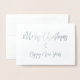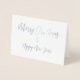 Élégant script crée ce design de carte de Noël avec du papier argenté à l'extérieur et du rouge de vacances et du gris chaud à l'intérieur. Ajoutez votre nom de famille ou de société pour une carte de vacances simple et belle pour la famille, les amis et les clients.