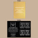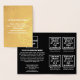 Carte de papier personnalisable que vous pouvez mettre votre marque d'entreprise et vos produits ou services. Vous pouvez mettre jusqu'à 4 produits. Customisez-le et utilisez-le comme matériel marketing pour annoncer votre marque et promouvoir vos produits ou services d'affaires. Carte Foil que vous pouvez utiliser pour sensibiliser la marque. Les couleurs design sont des textes blancs sur feuille d'or arrière - plan sur le devant et à l'intérieur sont des textes blancs sur arrière - plan noir. Pour customiser cette carte, téléchargez votre logo d'entreprise, des images de vos produits ou services, tapez votre nom d'entreprise, une brève description attrayante de votre entreprise et de vos produits ou services, le nom de vos produits ou services, l'adresse, le numéro de téléphone, le courriel et le site Web ou votre page de médias sociaux professionnels. Veuillez vérifier l'apparence sur tous les côtés après avoir téléchargé le logo, les images et les textes de saisie. Si l'apparence vous plaît, vous pouvez passer votre commande maintenant. Si vous avez besoin de redimensionner et déplacer le logo, les images et les textes pour s'adapter à cette carte, s'il vous plaît changer dans l'outil de conception. Vous pouvez également effectuer d'autres modifications en fonction de l'apparence de cette carte que vous préférez dans l'outil de conception, comme changer la couleur arrière - plan, la couleur de police et le style de police.