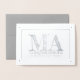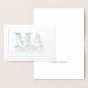 Une carte de graduation en feuille d'argent pour ceux qui ont obtenu une maîtrise en art. Le recto de la carte dit : "MA Félicitations pour la réalisation de vos Maîtres". Dans le message dit "Félicitations". Pour modifier le message, cliquez sur personnaliser. Une façon élégante de féliciter un ami ou un membre de la famille, comme un fils, une fille ou un petit-enfant pour leur diplôme.