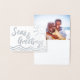 Seas and Greys in élégant papier argenté fait briller cette carte photo de Noël. Partagez vos photos de plage en famille (ou tout autre !) avec une touche moderne et fantaisiste. Le texte simple et stylisé sur le devant, l'accueil personnalisé des fêtes et la photo de famille surprise à l'intérieur raviront amis et famille. Ce carte photo de vacances est parfait pour les photos de famille à thème tropical, côtier ou plage. Et il est entièrement personnalisable pour s'adapter à l'ambiance de plage de votre famille.