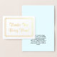 Ce design de carte de remerciement en feuille d'or fantaisie comporte le message "Merci d'être là !" sur le devant, ainsi qu'un message personnalisable à l'intérieur. Il pourrait être utilisé pour offrir grâce à quelqu'un qui a fait une action spéciale.
