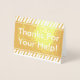 Dorée "Merci Pour Votre Aide !" Carte de vœux
