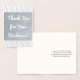 Cette carte de remerciement en papier argenté qui attire l'attention et qui attire l'attention, comporte le message "Merci pour votre gentillesse !" sur le devant, ainsi qu'un message personnalisable à l'intérieur. Il pourrait être utilisé pour exprimer sa gratitude à quelqu'un qui a assisté à un mariage, à des funérailles, à un diplôme ou à un autre événement.