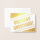 Cette carte de voeux d'anniversaire minime et simple en feuille d'or comporte le message "SALUTS D'ANNIVERSAIRE !" sur le devant, ainsi qu'un message personnalisé à l'intérieur. Il pourrait être utilisé pour célébrer l’anniversaire de quelqu’un.