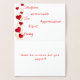 Cette carte de remerciement est montrée avec l'imprimé de la couronne d'une reine au style Miss America et l'imprimé de coeurs flottants en papier doré en or véritable. Customisez cet objet ou achetez tel quel. A l'intérieur a rouge et or tearts coeurs vigneron imprimer un côté avec le texte dans différentes polices de "gratitude, gratitude, appréciation, amour et bienveillance. Texte préimprimé supplémentaire de "merci beaucoup pour votre soutien.