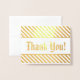 Cette carte de remerciement personnalisable en feuille d'or comporte le message "Merci !" sur le devant, ainsi qu'un message customisé à l'intérieur. On pourrait l'utiliser pour témoigner de l'appréciation à quelqu'un qui a fait quelque chose de bien.