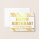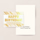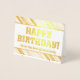 Cette carte de voeux fantaisiste et ludique en feuille d'or est dotée du message "HEUREUX ANNIVERSAIRE !" sur le devant, accompagné d'un message customisé à l'intérieur. On pourrait l'utiliser pour souhaiter un joyeux anniversaire à quelqu'un.
