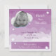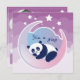 Carte mignonne avec un panda dormant sur la lune, étoiles blanches et arrière - plan violet nuageux. Sur le dos, customisez la carte avec la photo et les informations de naissance de votre bébé.