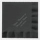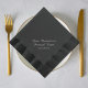 Élevez votre élégant dîner ou événement spécial avec ces serviettes en papier noir personnalisées. Parfait pour les mariages, les événements d'entreprise ou les fêtes officielles, chaque serviette présente un script sophistiqué dans l'impression de papier à papier. Choisissez entre argent, or rose ou feuille d'or pour correspondre à votre thème. Vendus en séries de 50, ces serviettes apportent une touche de luxe et de raffinement à tout cadre de table.