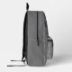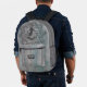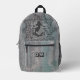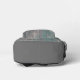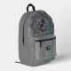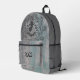 Sur ce sac à dos élégant est une toile de fond de peinture grise écaillée et bleuâtre sur bois rustique puis couronne décorative de fleurs noires avec un Bouddha au centre et sur la poche avant est le mot OM créer zen comme des vibes