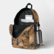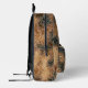 Le collage original de ZoeSPEAK sur ce sac à dos rappelle la carapace de tortue et le cuir, dans les tons marron de la crème caramel au chocolat noir. La poche zippée est conçue dans le style d'un sac à embrayage ou d'un sac à main, avec un rabat supérieur aux formes lisses ressemblant presque à des nuages. Son bord incurvé est surligné de perles d'or et d'une mince bordure dorée. Le motif continue sur le reste du sac à dos, mais avec une texture de lignes comme du verre craquelé sur les formes de nuages. Il y a une fermeture de volets au centre de la poche zipper, un disque rond fait du motif de glace craquelé, avec une fine bordure dorée. Au-dessus, il y a une sphère d'or avec un monogramme en noir. Le monogramme est configuré pour personnaliser, ou supprimer si vous le souhaitez.