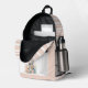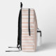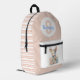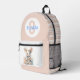 Joli sac à langer en forme de sac à dos en rose tendre, avec des graphismes représentant un joli lapin jouet, sur la zone de la poche. Des rayures roses et blanches accentuent le devant bleu uni du sac. Personnalisez la grande initiale rose et le nom bleu pour répondre à vos besoins.