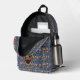 L'oeuvre originale de ZoeSPEAK sur ce sac à dos présente un portrait de l'auteur William Shakespeare. Le portrait est dans un cadre en or ovale avec des rubans et une couronne sur le dessus. Le papier peint arrière - plan bleu est orné de châteaux, de couronnes de rois et de fleurs jaunes et rouges, rappelant l'romantisme, la tragédie et la comédie de ses pièces de théâtre et de poésie.