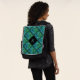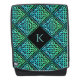 Un sac à dos monogramme avec un noeud bleu-vert celtique a répété la conception de carreaux de diamant. Personnalisez-le avec votre cadeau initial ou faites-le un cadeau customisé!
