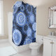 Ce rideau de douche est imprimé d'un motif circulaire unique dans les tons bleus, entièrement réalisé à partir de points !