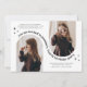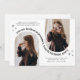 Une invitation d'anniversaire moderne avec 2 de vos propres photos en forme d'arcade. Le texte du titre est courbé autour des photos avec les étoiles. Vous pouvez modifier la couleur de tout le texte et des étoiles dans cette conception.