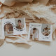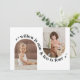 Une invitation d'anniversaire conjointe moderne avec 4 de vos propres photos en forme d'arcade - 2 sur le devant et 2 sur le dos. Le texte du titre est courbé autour des photos avec les étoiles. Vous pouvez modifier la couleur de tout le texte et des étoiles dans cette conception.