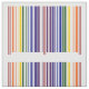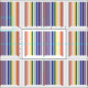 Le tissu géométrique élégant comporte une conception de code barres avec deux arcs-en-ciel faits de paires de rayures colorées qui correspondent aux nombres d'UPC. Réussissant mon geek, les nombres correspondent aux lettres en "arc-en-ciel" pour faire un double arc-en-ciel. Puisque codes barres sont seulement 12 nombres longtemps, je laisse le "r" être représenté par le début rouge et les rayures moyennes. L'ordre commence du côté gauche avec rouge, orange, jaune, vert, bleu, l'indigo, et la violette. Deux rayures de servir rouge de diviseur au milieu et alors les couleurs vont de la violette de nouveau au rouge pour un regard équilibré.