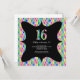 Cette élégante invitation sucrée, noire et multicolore, est agrémentée d'un motif arrière - plan moderne et coloré. Pour faire une douce fête de 16 ans spécial, vous avez besoin des faveurs, des décorations, de la nourriture, du thème, et bien sûr des invitations! Votre doux 16 invitations est la première impression que vos invités auront de votre fête. Les couleurs arc-en-ciel de ce design font apparaître l'invitation et font prendre note à vos invités. Cette invitation est également disponible en d'autres couleurs via le lien ci-dessous. Si vous voulez un invitation pour votre 16 fête sucrée qui a son propre look, il se peut que ce soit celui que vous avez recherché.