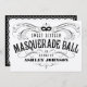 Des invitations à des boules de mascarade d'argent pour un doux 16. Ces invitations sont partiales. Le design avant est argenté et brillant avec du lettrage noir. Le dos est également argenté avec une bordure noire et du texte noir. Idéal pour une fête de 16 mascarades. Customisez les deux côtés avec les informations de votre parti.