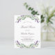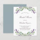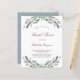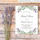 Un arrière - plan blanc décoré de fleurs de lavande et de verdure d'eucalyptus. Personnalisez et un nom et des détails. Retour : arrière - plan gris vert.