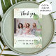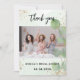 Un carte photo de Merci de Fête des mariées moderne. Un arrière - plan vert aquarellé, décoré d'un voile d'eucalyptus. Personnalisez et ajoutez votre photo et merci note.
