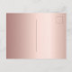 Une élégante invitation à la nuptiale tropicale estivale. Avec un cadre géométrique en faux or décoré d'hibiscus rose pâle, fleurissent des fleurs tropicales avec un peu de verdure. Un arrière - plan rose à l'apparence métallique. Le nom de la mariée à être est écrit avec un script de style manuel moderne. Texte noir. Dos : faux rose or arrière - plan métallique. Conseil : Si vous ne voulez pas qu'il ressemble à une carte postale, cliquez sur customiser, allez à l'arrière et retirez le séparateur et le timbre postal.