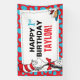Célébrez l'anniversaire de votre enfant avec Chat dans le Casquette! Personnalisez cette bannière d'anniversaire amusante en ajoutant le nom et l'âge de votre enfant.