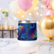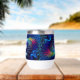 Image fractale principalement de couleur bleue avec des reflets rouges, verts et jaunes suggérant la peau du dragon. Customisez en ajoutant votre propre texte.