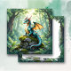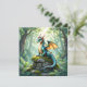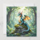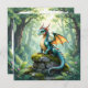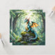 Carte blanche à thème Dragon. Un dragon lunaire, rendu dans un style d'illustration aquarelle détaillé, perche au-dessus d'une ruine en pierre ancienne recouverte de mousse. La lumière du soleil filtre à travers la canopée dense de la forêt, illuminant les poussières mottes dansant dans l'air. Les écailles du dragon brillent de teintes irisées, et ses yeux tiennent un art imaginaire doux, sachant et amusant. Mignonne pour la chambre d'un garçon.