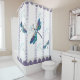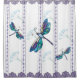Dessin original de Sandra Gale, avec plusieurs libellules colorées en motifs floraux et décoratifs violets et bleus. Jolies couleurs qui s'accordent bien avec de nombreuses combinaisons comme le blues, violets et verts pour une belle salle de bain.