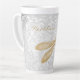 Profitez de votre café du matin ou du tard du soir avec une Mug Latte Personnalisée de Dragonfly Gold. Le design de la motte est composé d'une libellule colorée, d'une vigne feuillue blanche molle contre un arrière - plan damassé gris clair avec une zone à personnaliser avec votre nom. Autres cadeaux disponibles avec ce design ainsi qu'une variété de couleurs.