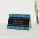 Le texte avant de carte indique le Merci, avec plus de texte ci-dessous. Tous les deux peuvent être customisés par vous pour dire ce que vous souhaitez. Cette conception de plume de paon a les produits assortis disponibles dans mon magasin. Collection unique et moderne de mariage de plume de paon dans le bleu dramatique d'aqua et pourpre.