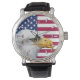 Drapeau Américain Avec Montre En Cuir Vintage Aigle