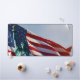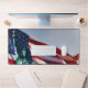"Célébrez la fierté américaine avec ce design saisissant avec le drapeau américain soufflant dans le vent derrière l'emblématique Statue de la Liberté. Une image audacieuse et patriotique, parfaite pour toute occasion qui honore liberté et liberté."