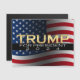 Donald Trump a annoncé sa candidature officielle à la présidence aux élections de 2024. Montrez votre soutien avec ce noir foncé et Drapeau avec l'effet bloc de brique métallique or en lettrage avec une atmosphère riche milliardaire.